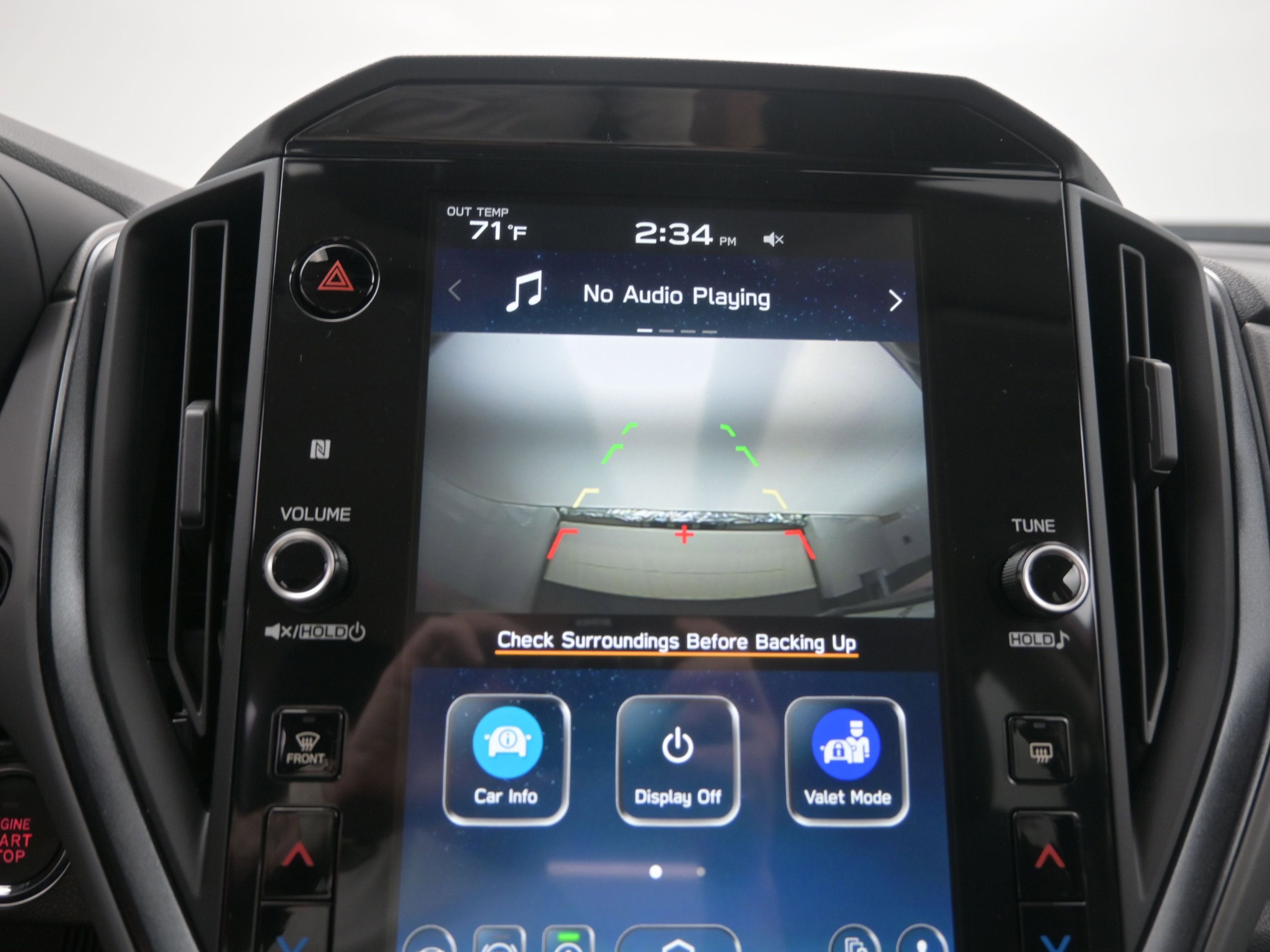 - Radio: Subaru 11.6" Multimedia Plus System -inc: AM/FM stereo, HD Radio, multi-touch gesture high resolution display screen, voice activated controls, Bluetooth® audio streaming and hands-free phone connectivity, Bluetooth® hands-free SMS text messaging connectivity, iPod control capability, smartphone integration: wired and wireless Android Auto w/full screen view and wireless Apple CarPlay w/full screen view, USB and Over The Air (OTA) audio system update, steering wheel audio system and Bluetooth® control switches, 6 speakers (2 dash panel tweeter, 2 front door and 2 rear door), illuminated 3.5mm auxiliary input jack, illuminated front USB A and C input/charge ports, connected services operation indicator, SOS emergency assistance: red SOS button and enhanced roadside assistance: blue i-button