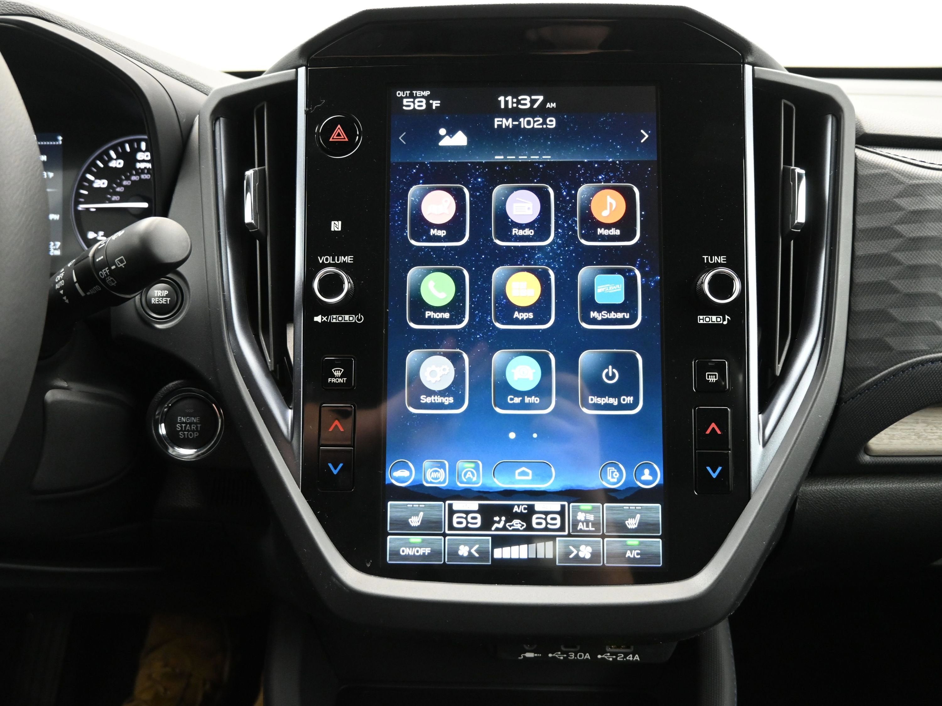 - Radio: Subaru 11.6" Multimedia Plus System -inc: valet mode, integrated center information display, AM/FM stereo HD Radio, multi-touch gesture high resolution display screen, voice activated controls, Bluetooth® audio streaming and hands-free phone connectivity w/SMS text messaging (refer to Subaru.com for cellphone compatibility), iPod control capability, smartphone integration: Android Auto and Apple CarPlay w/full screen view and wireless connection, SiriusXM satellite radio w/360L (free 4-month trial subscription included), USB and Over The Air (OTA) audio system update, steering wheel controls, 6 speakers, 3.5mm auxiliary input jack and roof mounted audio and satellite antenna