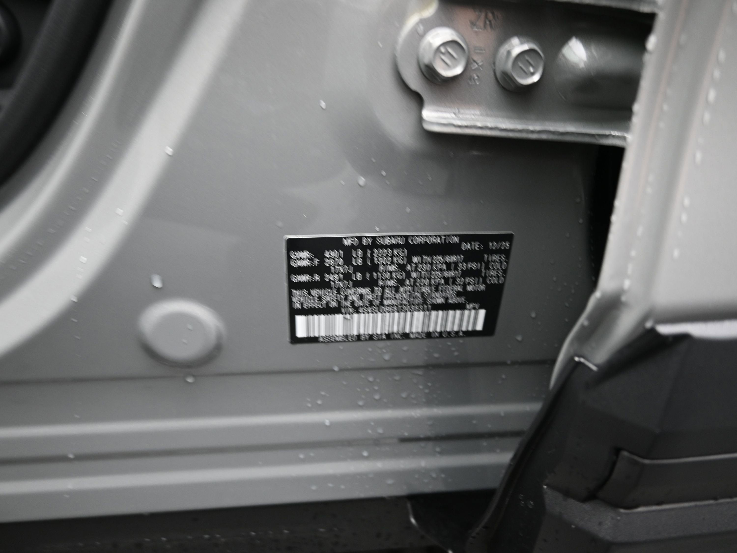 - Wheels: 17" x 7.0 J Dark Metallic Aluminum-Alloy -inc: machine finish and black wheel center cap w/Subaru 6 star logo