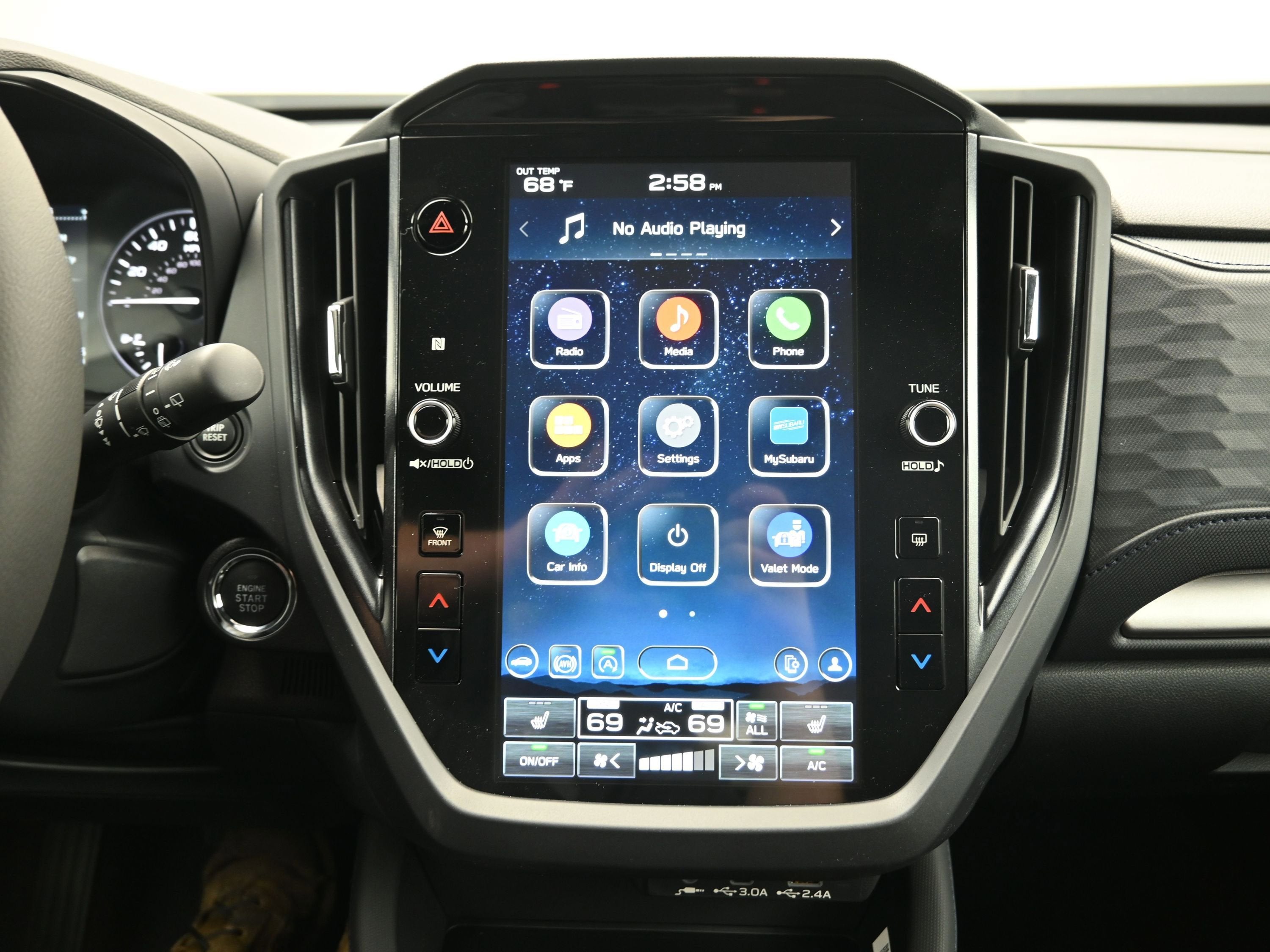 - Radio: Subaru 11.6" Multimedia Plus System -inc: valet mode, integrated center information display, AM/FM stereo HD Radio, multi-touch gesture high resolution display screen, voice activated controls, Bluetooth® audio streaming and hands-free phone connectivity w/SMS text messaging (refer to Subaru.com for cellphone compatibility), iPod control capability, smartphone integration: Android Auto and Apple CarPlay w/full screen view and wireless connection, SiriusXM satellite radio w/360L (free 4-month trial subscription included), USB and Over The Air (OTA) audio system update, steering wheel controls, 6 speakers, 3.5mm auxiliary input jack and roof mounted audio and satellite antenna