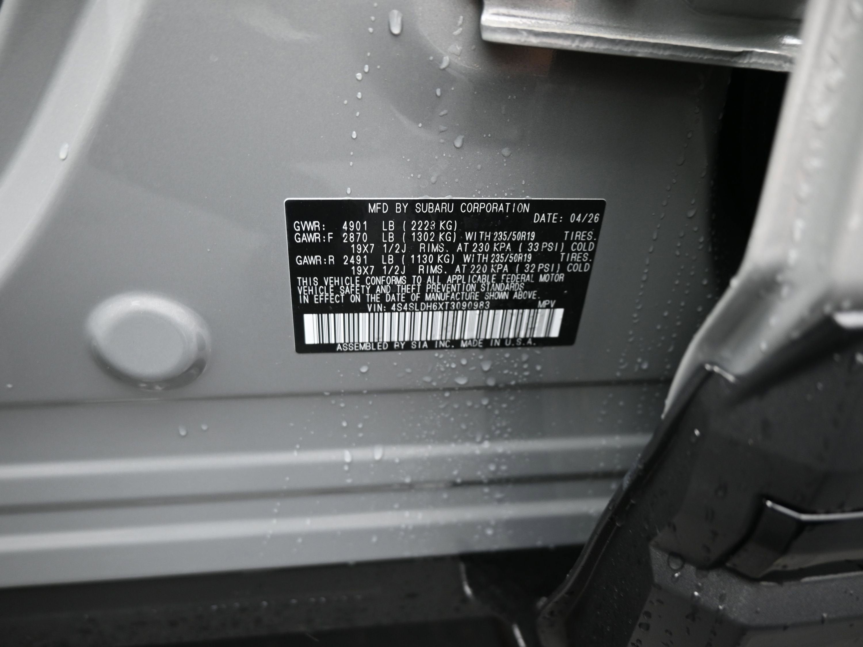 - Tires: 235/50R19 99V All-Season