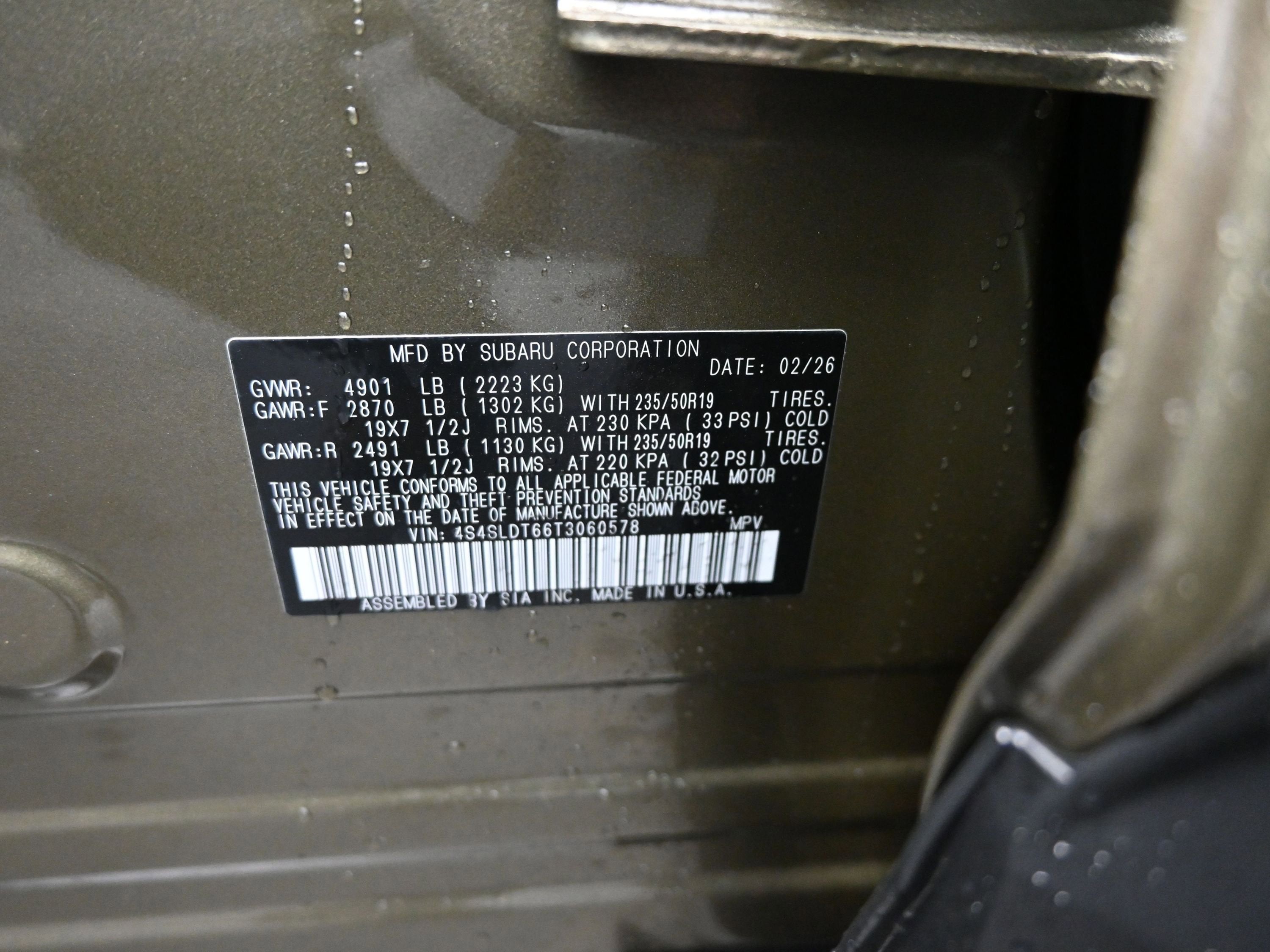 - Wheels: 19" x 7.5 J Dark Gray Aluminum-Alloy -inc: machine finish and black wheel center cap w/Subaru 6 star logo