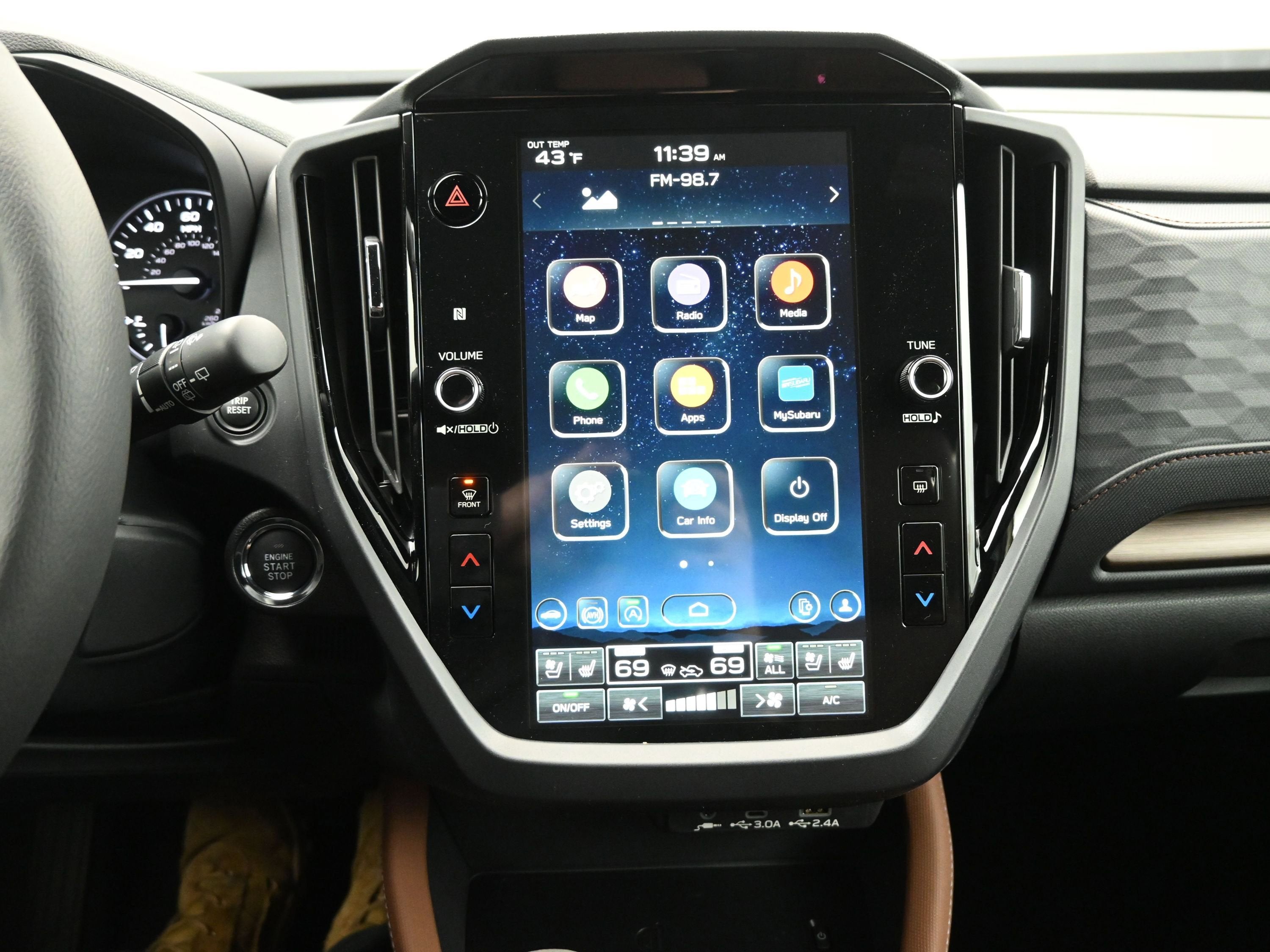 - Radio: Subaru 11.6" Multimedia Navigation System -inc: valet mode, integrated center information display, AM/FM stereo HD Radio, multi-touch gesture high resolution display screen, voice activated controls, voice activated navigation, Bluetooth® audio streaming and hands-free phone connectivity w/SMS text messaging (refer to Subaru.com for cellphone compatibility), TomTom navigation software w/what3words, iPod control capability, smartphone integration: Android Auto and Apple CarPlay w/full screen view and wireless connection, SiriusXM satellite radio w/360L (free 4-month trial subscription included), USB and Over The Air (OTA) audio system update, USB and Map Over The Air (MOTA) TomTom navigation system update (3 years free map updates), steering wheel controls, harman/Kardon speaker system w/11 speakers and 576 watt equivalent maximum output amplifier, 3.5mm auxiliary input jack and roof mounted audio, satellite antenna and SiriusXM Travel Link (4 months free trial included/subscription required after)