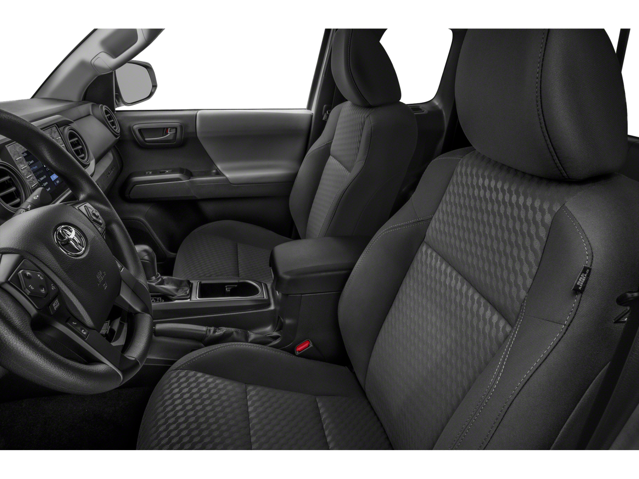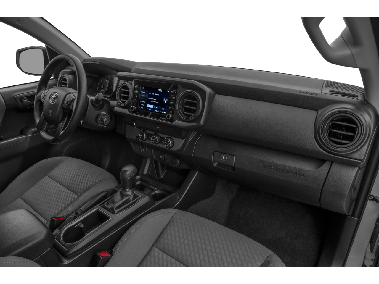 Safety is a top priority in the Tacoma SR, featuring eight airbags, including Front Impact, Side Impact, and Knee Airbags for both driver and passenger. The Toyota Safety Sense P suite includes Forward Collision Mitigation and Pedestrian Detection to keep you aware of your surroundings. Inside, the cabin offers a comfortable ride with Cloth Bucket Seats, a Driver Adjustable Lumbar Support, and a Manual Climate Control system, ensuring you and your passenger enjoy every journey in comfort.