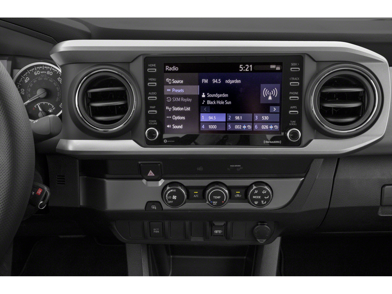 Inside, the Tacoma SR5 is just as impressive. The cloth seats offer comfort and durability, while the manual driver lumbar support and adjustable steering wheel ensure a tailored driving experience. The 60-40 folding rear seats and under-seat storage provide ample space for your gear, whether you're heading to the Delta Heritage Trail for some hiking or loading up for a trip to the Memphis Zoo with the family.