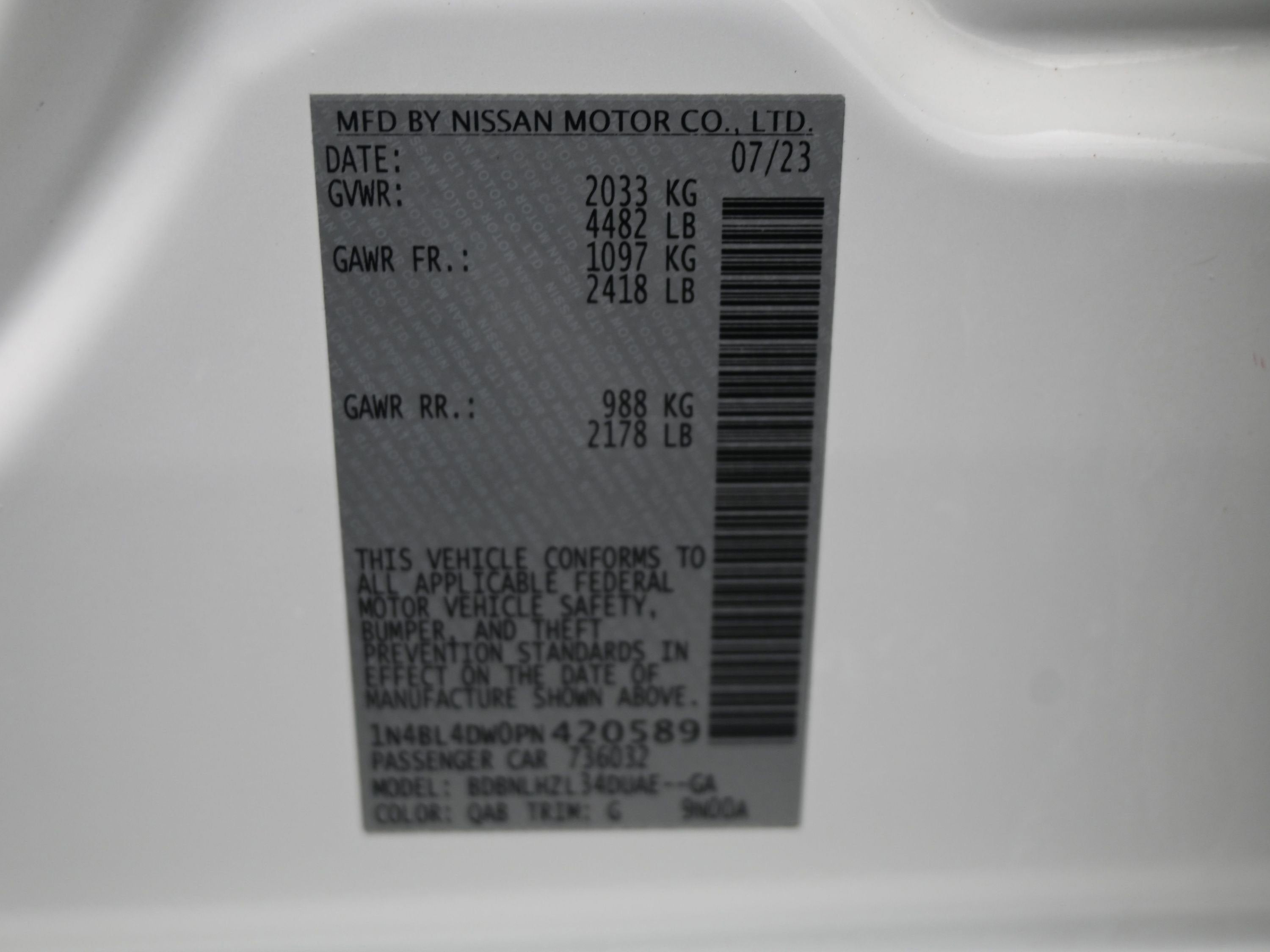 - Vehicle Name: Nissan Altima