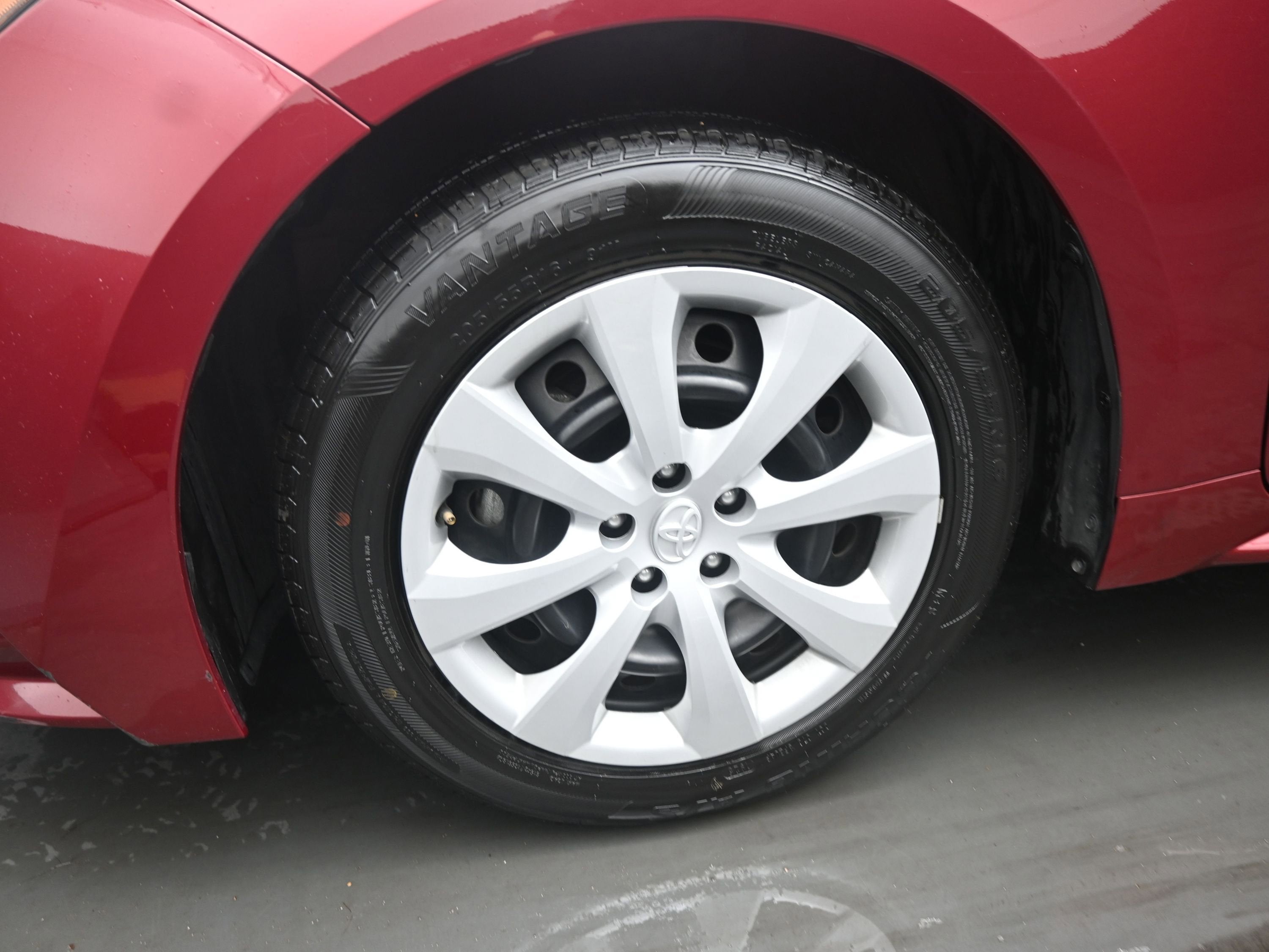 Adorned in stunning Ruby Flare Pearl, the Corolla LE stands out with its body-colored bumpers and black grille. The 16-inch steel wheels with full covers and LED headlights enhance its sleek profile, while the compact spare tire ensures you're prepared for any unexpected detours.